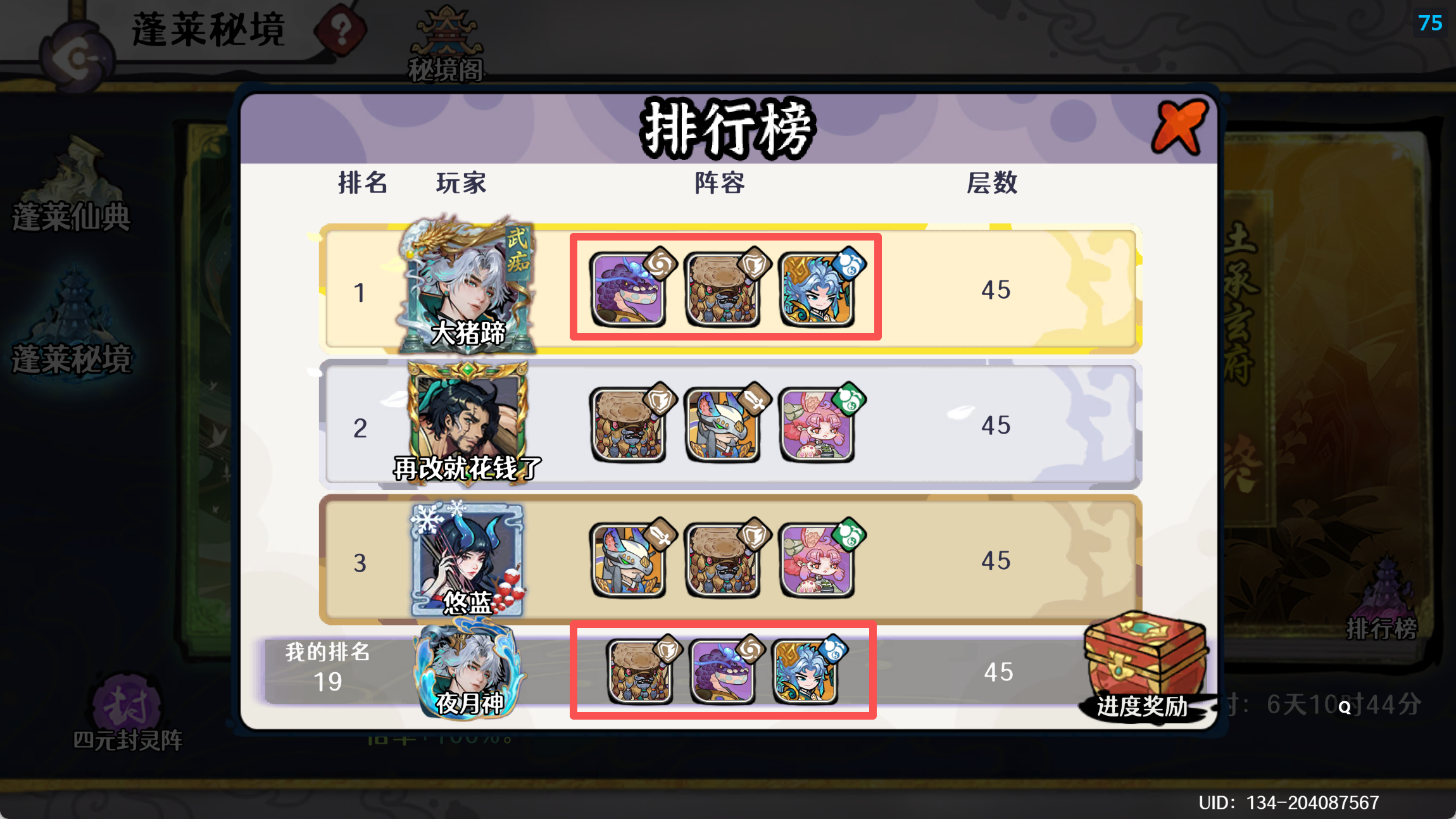 有的小伙伴可能发现了,这周我和猪蹄用了一套全新的阵容通关的蓬莱秘境土,相较于剑魔而言这套新阵容效率更高,同时将大家的剑魔解放出来去打其他秘境。
