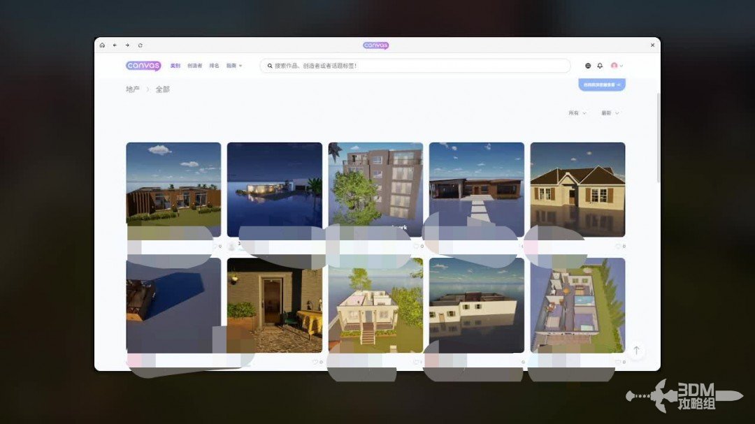 Canvas的工功能非常完善,玩家小到一个桌面摆件,大到zoi创建房屋建造都可以上传,还可以按照热度寻找浏览量高的作品直接保存到游戏里面。同样的不只是作品,玩家还能关注自己喜欢的创作者,持续关注该创作者的最新作品。