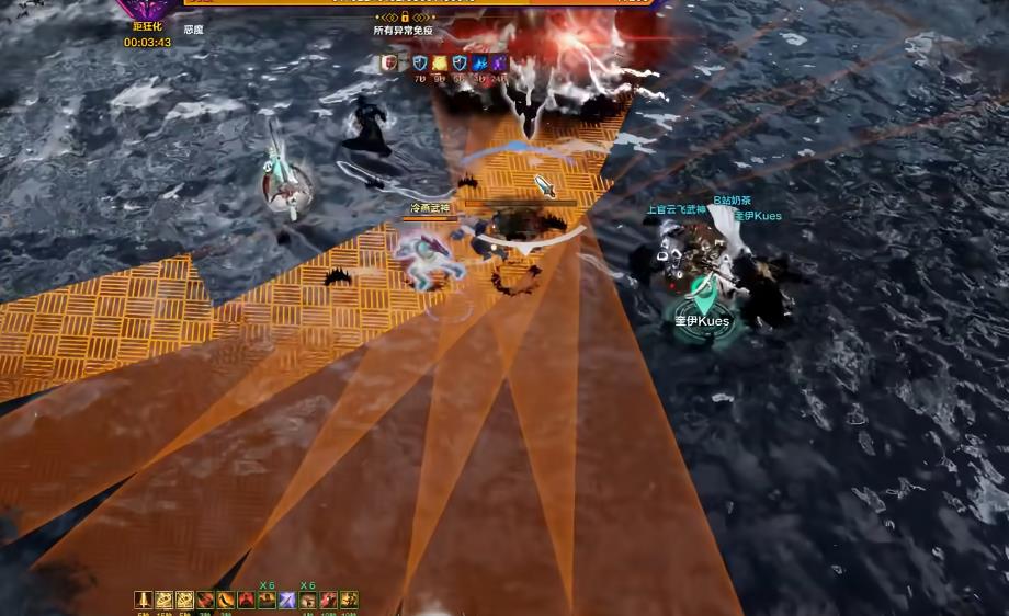 需要分散站位并将鼠标指针对着boss,随后他会将武器举过头顶,随机锁定一人施展次元斩。总共会进行四刀次元斩,每次都会换人,当发现他正面对着自己,也就是鼠标指针位置时,使用凝时药水。像是大锤、督军等职业可以开盾硬顶次元斩,瞬发空格的职业则可以用空格躲避,但不推荐,因为一旦失误减员可能又要重新打。