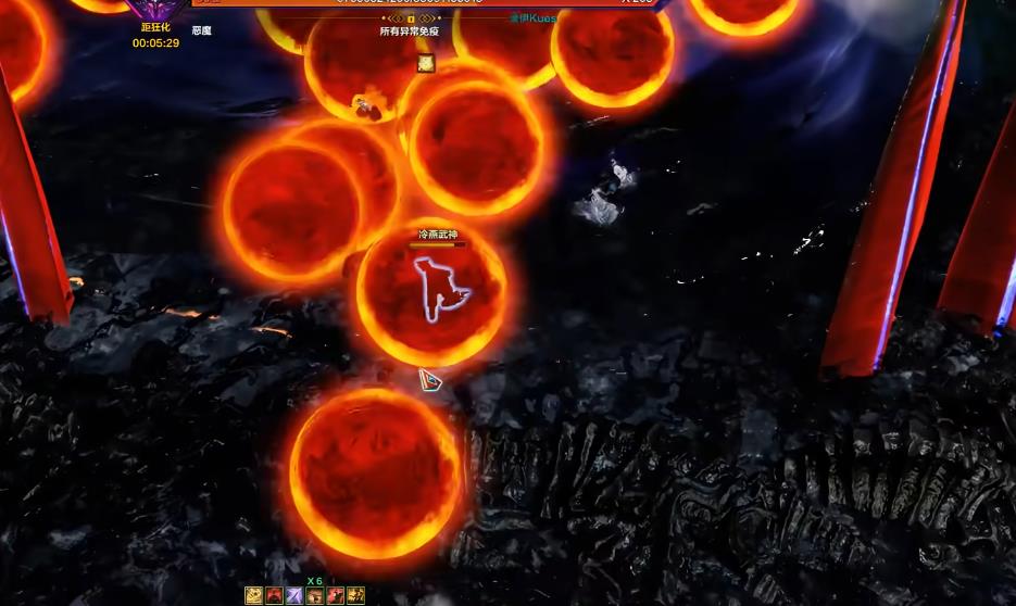 当boss剩余210血左右地图出现多轮红色和蓝色扇形范围,走位躲好地板攻击即可,随后会出现四轮鬼手攻击。被鬼手命中会叠加一层减益状态,叠到五层会直接死亡,不过不用过于在意,基本不可能叠到五层。但是被鬼手命中可能被推走导致地形杀,在躲避的同时需要使用火焰雷和瘫痪技能打瘫中间的boss。
