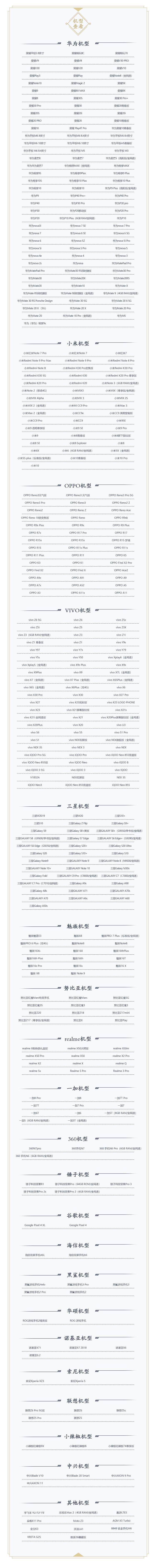 3、附开测适配机型,少侠可自己的机型适配情况