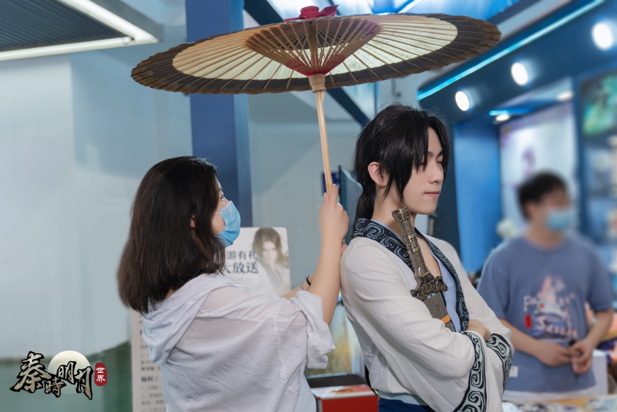 玩家与秦时侠客现场还原手游“撑伞”互动