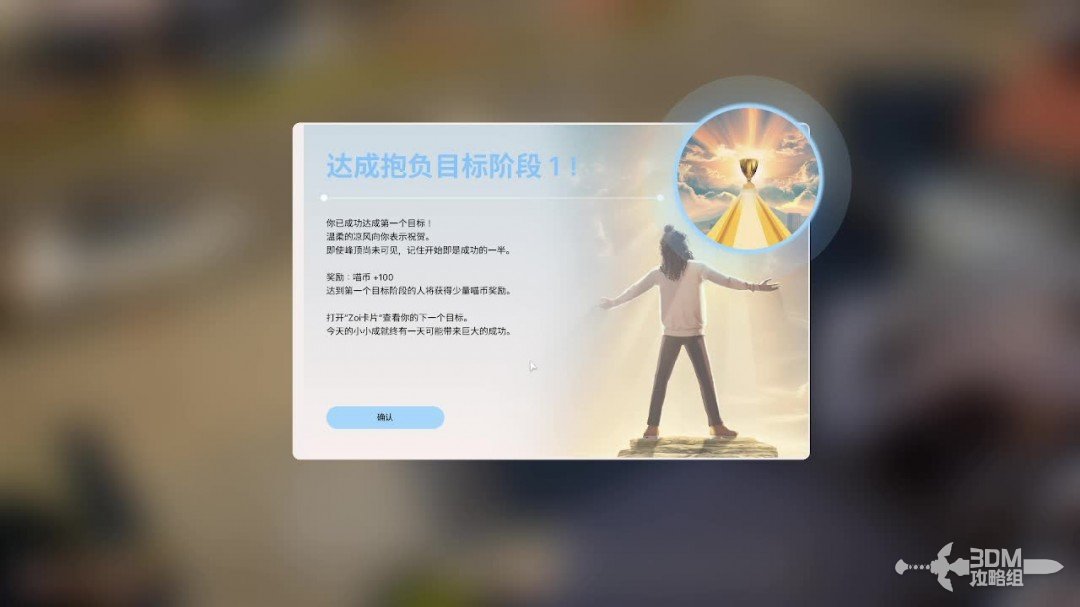 右边的界面可以看见一个喵喵商店,在喵喵商店可以用喵币购买一些快捷道具,喵币可以在zoi完成自己的抱负的时候获得。
