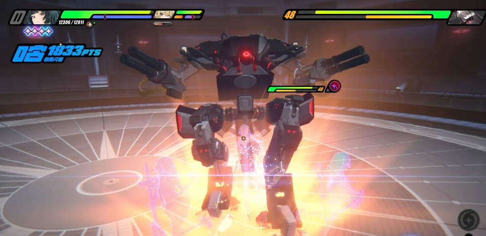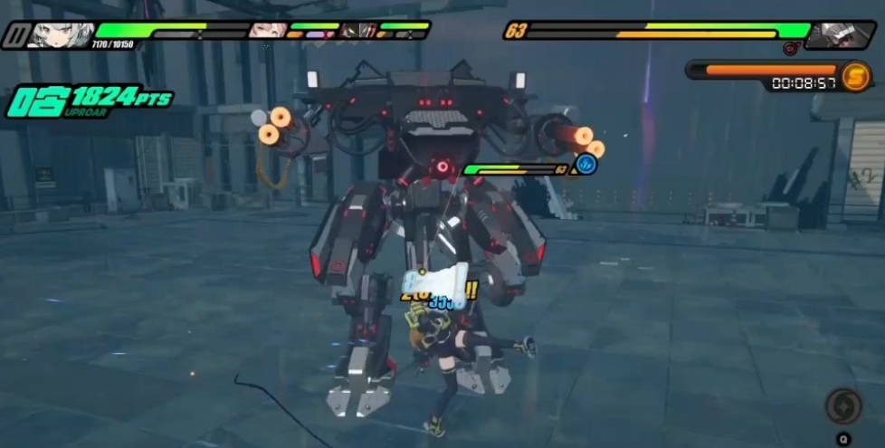 红闪招式连续炮击属于弹道攻击,处于远距离时骇鸟有概率释放,它会先蜷缩身体并蹦出火花,看到这个动作出现时立刻切出挡弹道性能的角色,跑动能挡住所有的炮击伤害。移动炮击也是弹道攻击,该招式的起手和连续炮击相同,它会先蜷缩身体并蹦出火花,看到这动作出现时切出挡弹道性能的角色。后跳炮击招式起手跟蓄力炮击一样,都会左右脚原地踏步,但在骇鸟后跳时不会出现黄色光圈。飞弹轰炸又是一个弹道攻击,看到左右脚原地踏步然后下沉身体就会使用飞弹轰炸,此时快速切出具备挡弹道性能的角色跑动来挡住所有飞弹伤害。