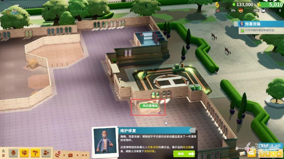 博物馆的外面,有停机坪,玩家可以通过派遣专家通过直升机进行探险带回更多的展览品。