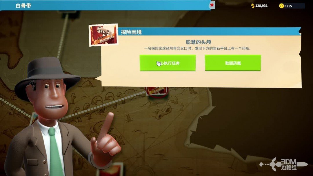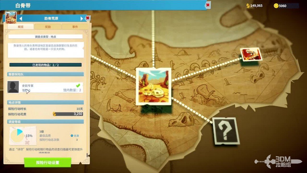 玩家选择出发探险的地图,不同的地图会有不同的要求,与此同时每一次探险都会增加地图熟练度,熟练度越高带回来的藏品就会越珍稀。有的地图会对探险的专家有相应的能力要求,可以修建员工培训室来提升,也可以在员工招聘面板里面筛选有相应能力的专家。