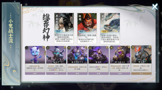 游戏采用“三线兵种”机制,这意味许多势力的“内部增益”羁绊,可以与不同势力巧妙联动,这种基于兵种的增益效果可以跨越势力的界限。以“小鬼战士流”为例,该流派通过幽都势力的“瘴气”与“小鬼”资源联动,结合中立势力的玄武增益,实现战士部从的指数级增长。阴兵、鬼卒为鬼将提供资源,奈何桥守卫与玄武协同加成战士兵种,最终小鬼数量积累至100后,更可进化为终极战力——阎罗王。这一流派的构建,充分体现了游戏在资源运营与兵种联动上的深度。