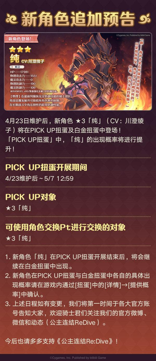 维护完成后将追加全新角色★3纯、实装天井功能,同时开启一系列限时活动。