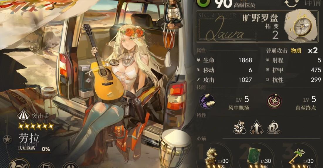 劳拉是神秘系的两段攻击物理突击职业角色,在对单环境下二破特性可让我方角色的警戒攻击,跟随着敌方boss响应攻击。让突击、刀锋职业在面对不会移动敌人的时候,每轮都能够打出警戒攻击。由于响应机制的更改,面对一轮多次攻击的boss,可让每个警戒角色都能够打出多次伤害爆炸的警戒攻击,是突击刀锋职业在打boss的不可缺少核心辅助角色。在对群环境下她的普攻和技能二都具备弹射能力,技能二甚至可对同一个目标反复弹射。