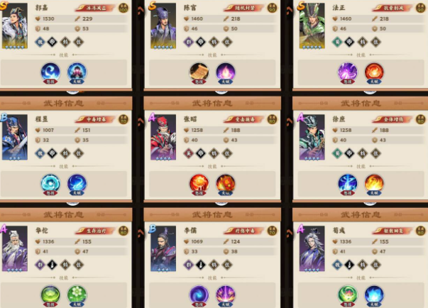 阵容构筑需遵循“羁绊优先、星级次之”的原则。例如,6名谋士即可激活基础羁绊效果,即使全员为一星,也能显著提升群体法伤与控制覆盖率;相较之下,单个高星但脱离羁绊的武将,实战效能反而受限。资源分配应高度聚焦核心角色:郭嘉与程昱承担主力法术输出职能,建议优先升至黄色二星及以上;华佗作为唯一治疗位,星级保障同样关键;其余谋士仅需满足羁绊解锁条件,前期无需额外投入养成资源。