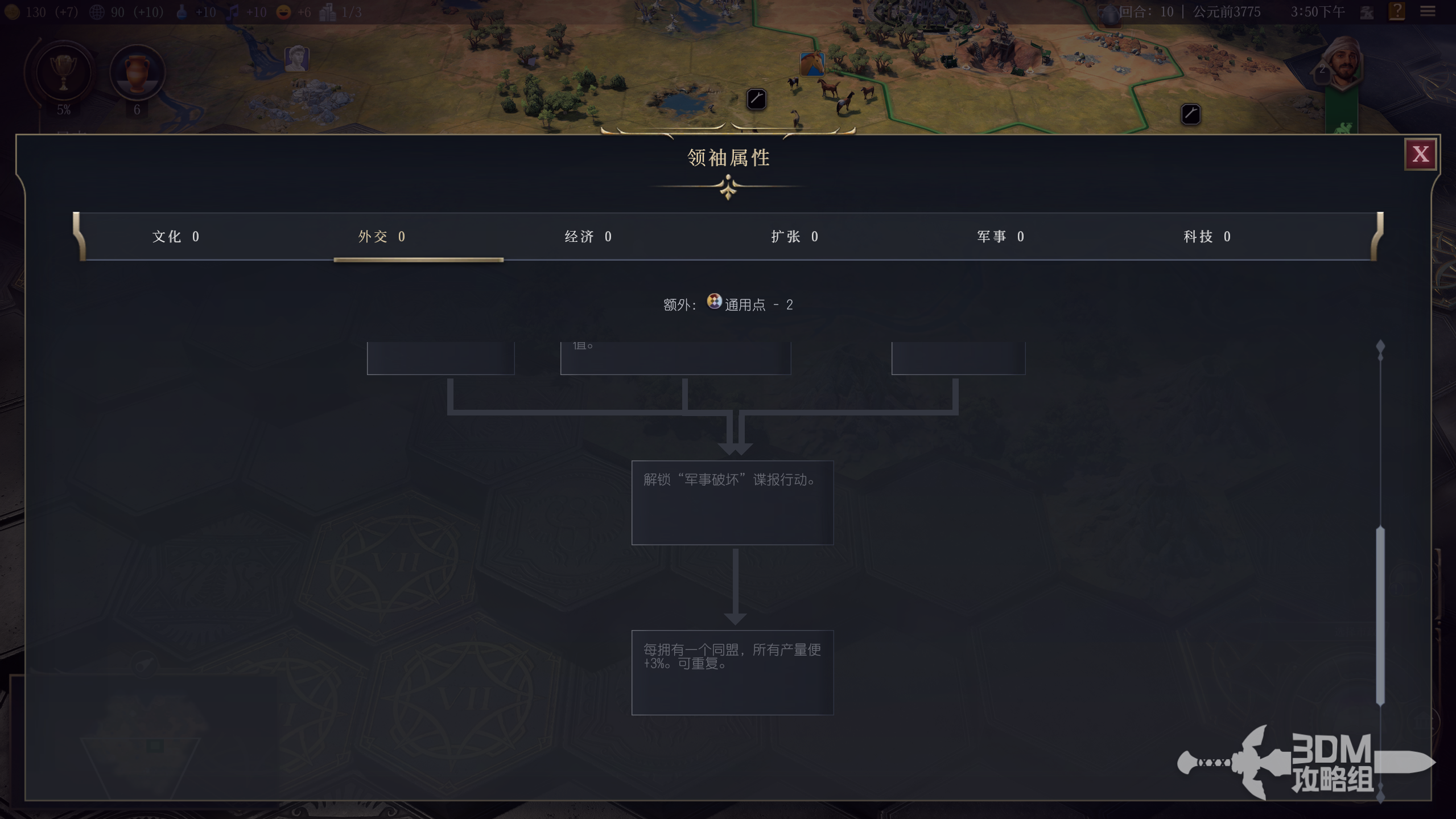 文明选择:每个文明可通过故事事件获得3点。第一个事件发生在第50回合(标准速度下),另外两个事件发生在玩家完成额外的故事事件任务之后。