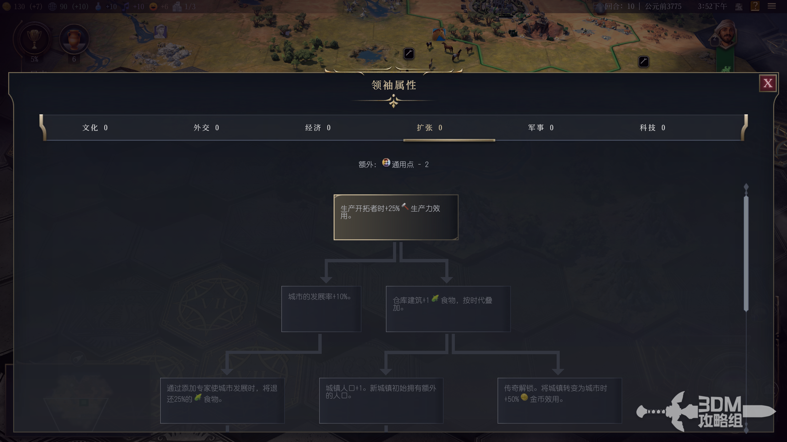 领袖选择:每位领袖可通过故事事件获得3点 -- 每个时代各1点。这些故事事件将在第25回合发生(标准速度下)。
