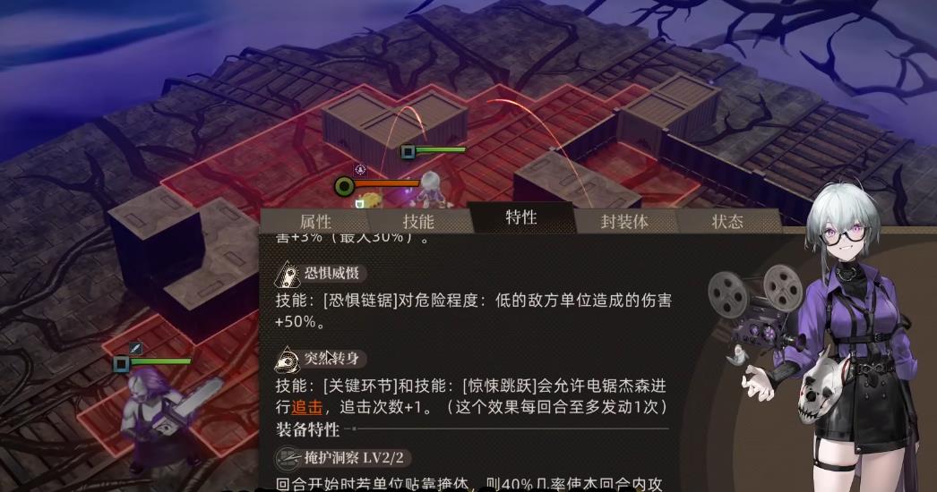维奥拉在拓变方面一、三、四与五拓都有提升,其中一拓让电锯杰森每轮可多追击一次,能大幅度提升她应对boss的能力,提升幅度约为29.2%。但是要注意将该角色的两个技能拆分到两轮去打,对群体怪物提升不算明显,仅有1.8%。二拓主要是提高惊悚跳跃的启动速度,在认知海域中有不错的表现,三拓是将杰森的恐惧链锯的范围从3×3提升到5×5。假设让杰森从击中两个敌人变为击中三个敌人,则提升约为23.5%。