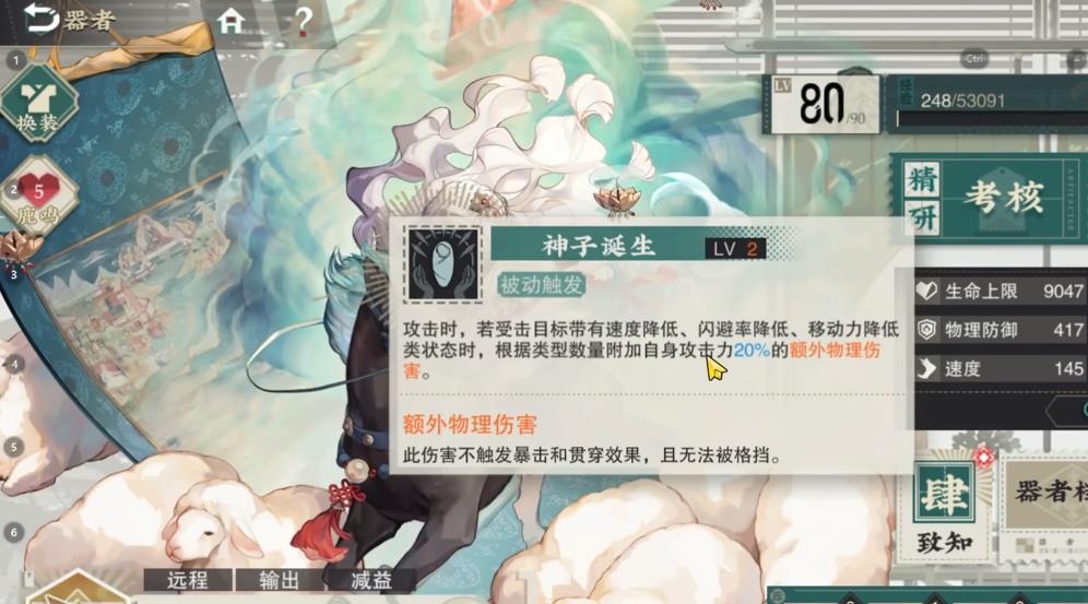 在考核方面点出三级被动二,便会多10%的攻击力,不需要继续往后面点,而是点下方的第二档攻击力即可。她作为减益型的输出角色,减少速度与移动力等能力都比较强,用的最多便是她的被动一。瞄准会让敌方减少两格移动力,可以搭配一些挂上寒天的队友,或者是战国铜冰鉴等同样能让敌方移动力降低的队友,可以让敌方怪物几乎没有任何的输出回合,经常用来搭配其他的远击角色一起上场。