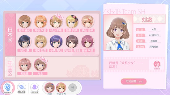 进入游戏后,玩家在被邀请做为经纪人后,就可以初始在日本和中国的AKB48成员中选择三位成员组成你的初始偶像团体。