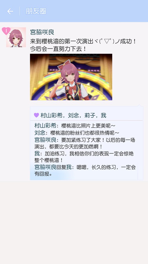 同时,你的偶像们也会通过即时聊天工具、朋友圈与你互动,你还可以在朋友圈给偶像们点赞和评论,增强与偶像的感情。这个玩法的体验感特别好,很有代入感,也看出了开发团队的用心之处。