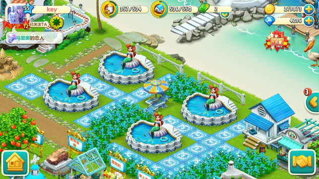 田园风格的地板、围栏可以任由选择,或者还可以选择青葱小径,曲径通幽,围上不同颜色的花圃篱笆,装点自己心中的庄园。海滩城堡,独度假凉亭等不同主题的装饰品更增添别样的游戏魅力。