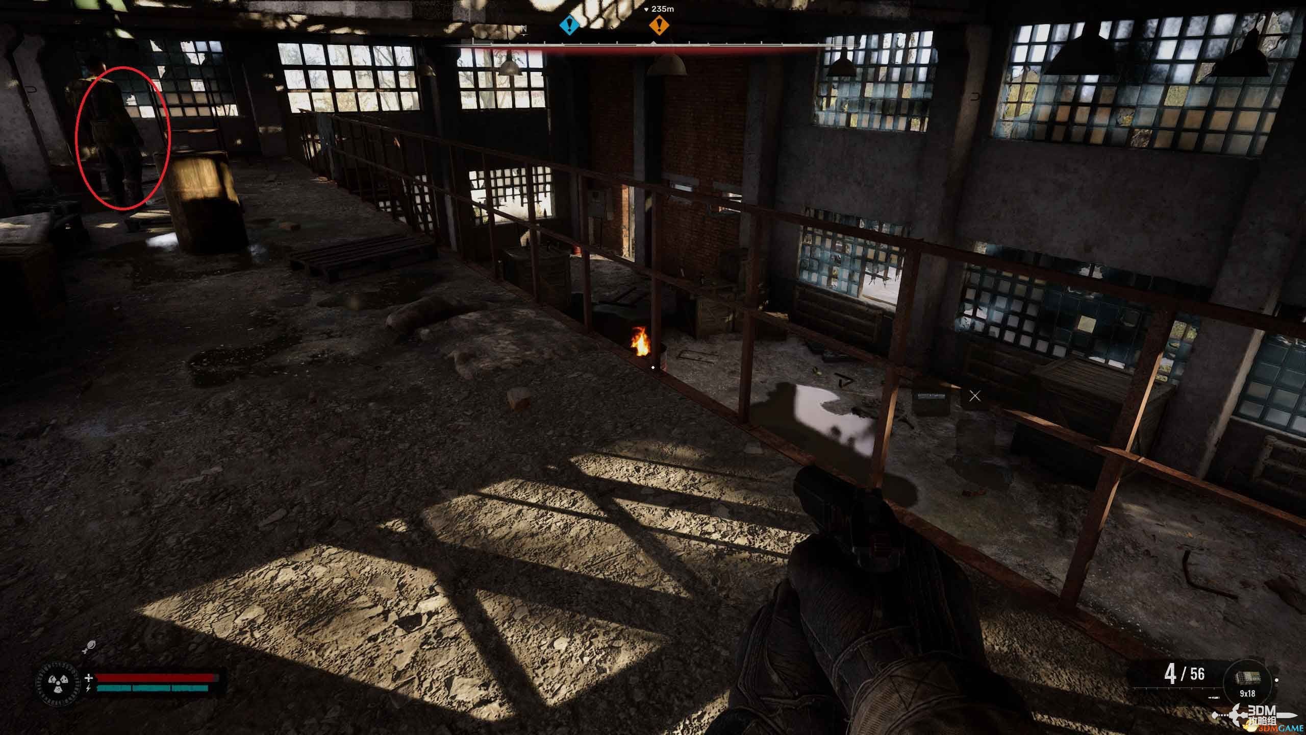 前往潜行者营地途中会遇到被敌人包围在房间里的卓里克。