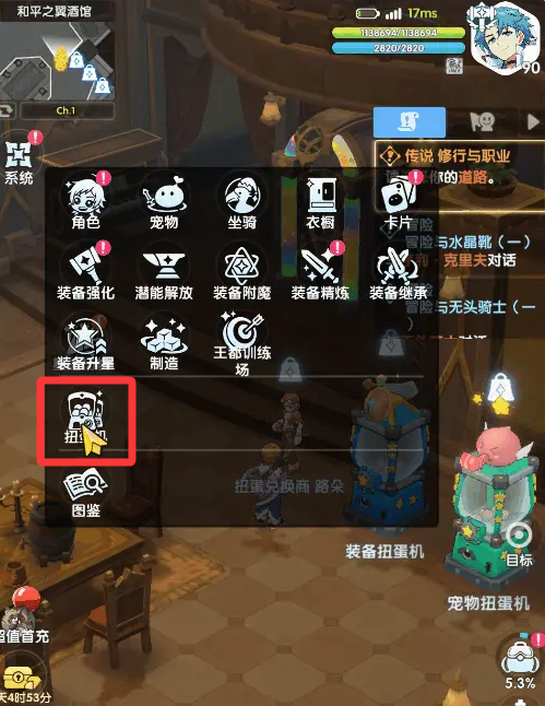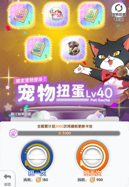 3、宠物扭蛋机:可以获得对应等级的稀有宠物或技能书、封印球、宠物提升材料、扭蛋兑换券等。