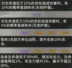 重生 战斗中死亡时,有30%几率复活并回复15%的最大生命。 提供复活效果人人都拥有庞统体验卡