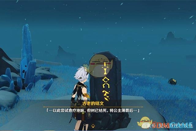 第七块石碑位于“寒天之钉”和“星荧洞窟”中间的位置,玩家从雪葬之都·旧宫的传送锚点处沿着蜿蜒的山路直接跑到尽头就能看到,碑文上书:“……以此尝试愈疗地脉,但树已枯死。将公主薄葬后……”。