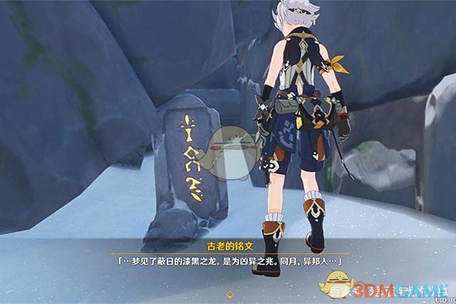 其实关于第三块石碑和第四块石碑的顺序还有待戏虫进一步考证,从逻辑角度来看,这段铭文可以理解为:有了水源和资源,之后雪都开始了一段繁荣的历史,直到有一天公主梦见了黑龙,而同月有位异邦人也来到了雪都。结合武器“雪葬的星银”里的背景故事,公主和异邦人“伊蒙洛卡”应该是恋人的关系,所以异邦人的由来必须先交代一下。