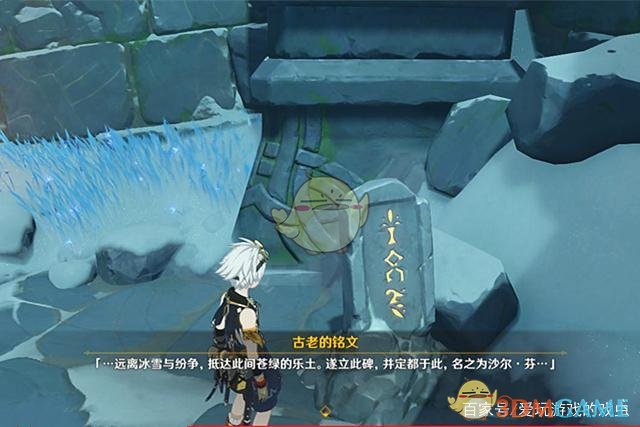 “……远离冰雪与纷争,抵达此间苍绿的乐土,遂立此碑,并定都于此,名之为沙尔·芬……”在龙脊雪山冰和水元素圣遗物秘境副本入口旁的一块石碑上,刻着这样的一段铭文,结合秘境“芬德尼尔之顶”的名字,我们可以了解到曾经的雪葬之都全名为“沙尔·芬德尼尔”,这也是第一块建都之碑。