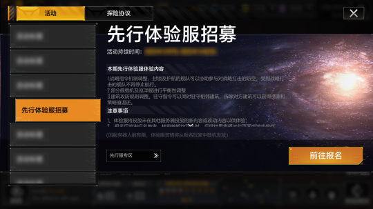 先行体验服是独立于当前已开放星系之外的全新星系,主要用于投放尚未在正式星系投放的玩法内容,以供各位玩家进行先行体验。