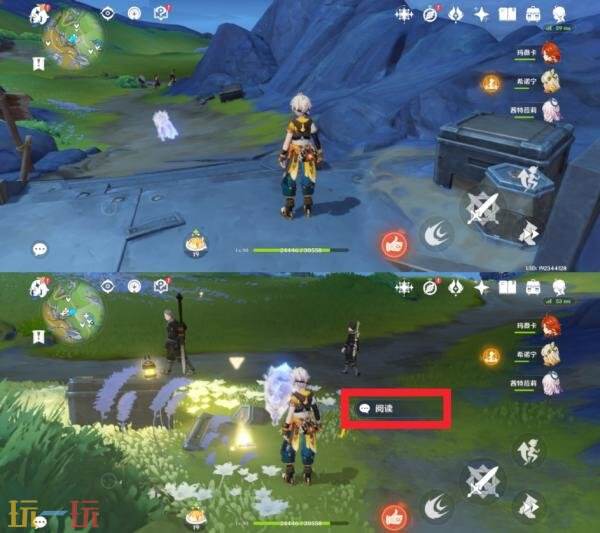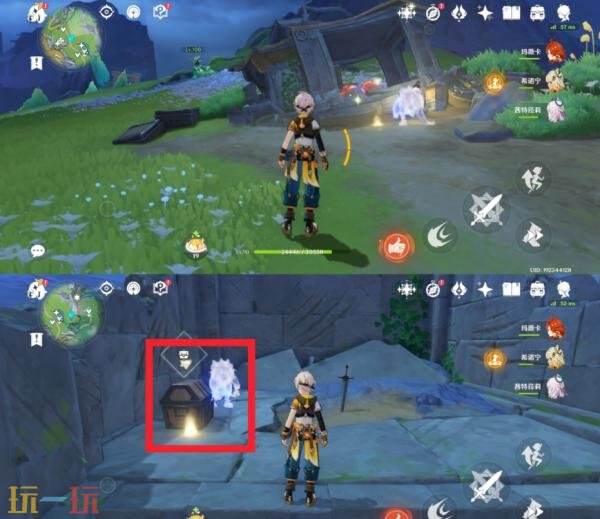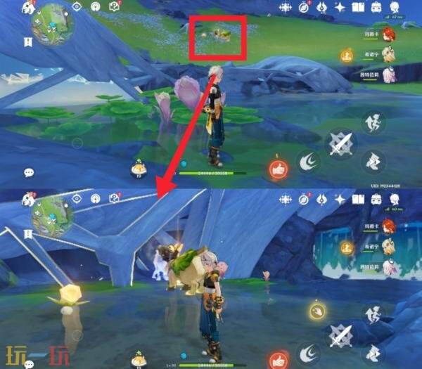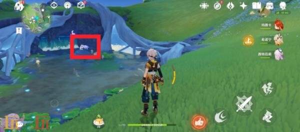 第三个点位在这附近一个小瀑布下面,触碰他,他会进到旁边的护罩里,转动视角交互周围的羊来撞这个护罩,然后给它也送回遗迹,注意这里了牵着羊多等一会可以获得一个[牧羊人]的成就