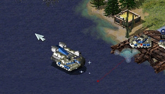 在桥将断的时候用超时空将坦克冻结,然后按S键,路径开启,将其点到旁边,选择坦克,按住ALT键,一直点气垫船,要求两者距离尽可能近。按一下Z键,使路径下的超时空移位,取消路径,这时的坦克会自动走到了水面上。