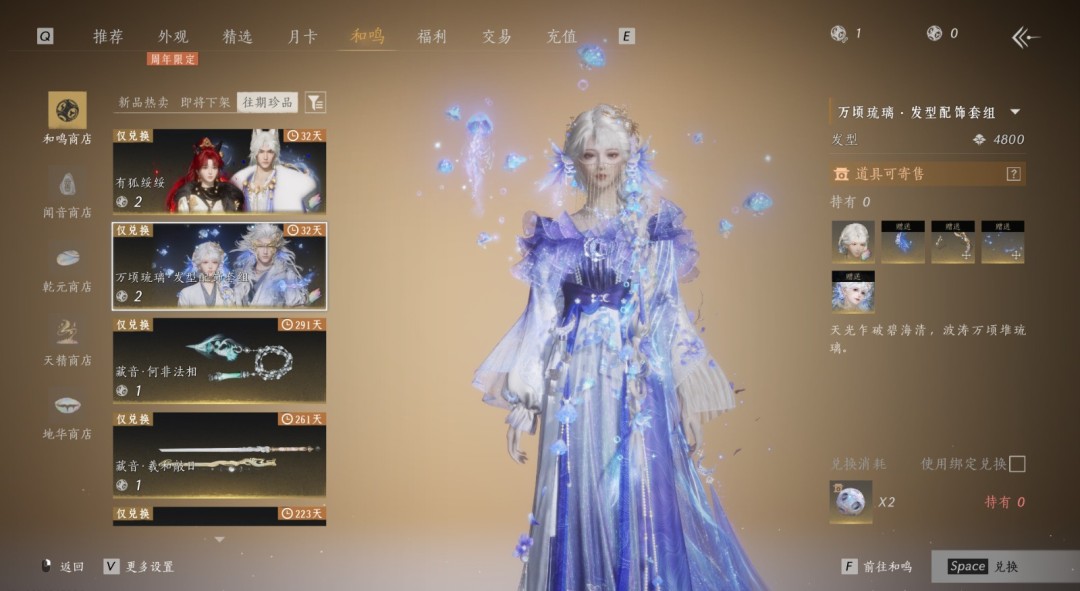 2、等着第二次保底,刚好卡在上期和鸣过期前出来。换上一期的【(1换万顷琉璃头发、2换有狐绥绥一套)头发比较配那套衣服,有狐的优势就是一大套,很全,结算动画也可以】