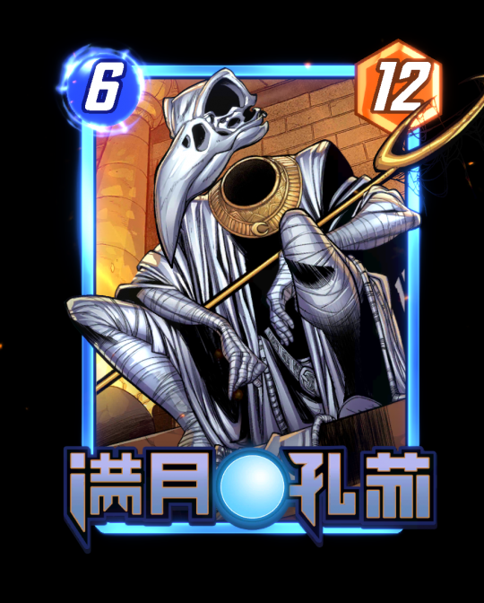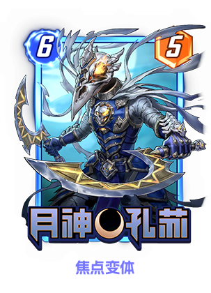 [1/0]每回合开始时,能量+1。若你已填满此区域,则删去此牌。* 如果没有基础卡,在得到变体的时候会自动获得。3.第三周 1月22日9点~1月29日9点「月神孔苏」时空卡包[6/5] 被丢弃后,此牌返回手牌并进入下一个月相。揭示:将1张被你丢弃的卡牌复活至另一区域,并将其战力设为5。