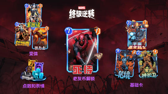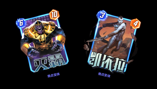 * 如果没有基础卡,在得到变体的时候会自动获得。4.第四周 1月29日9点~2月5日9点「灭霸」&「凯依拉」时空卡包「灭霸」[6/10] 对战开始:抽出灭霸并将六张无限宝石洗进你的卡组。「凯依拉」[3/4] 持续:你所有初始能量消耗为1和6的卡牌均无法被删去。