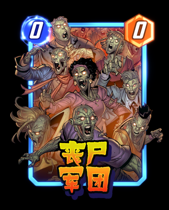 [5/3] 揭示:军团+1,然后此牌获得等同于你所有军团的战力。(会依次获得每个军团相等的战力并累加)「丧尸神力侠」
