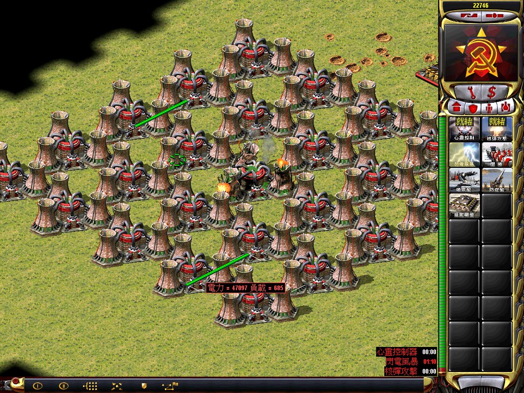 同理,来测测心控的威力。吧核电站修好,让电量为50000.用心控打击最中间的核电站。上图!