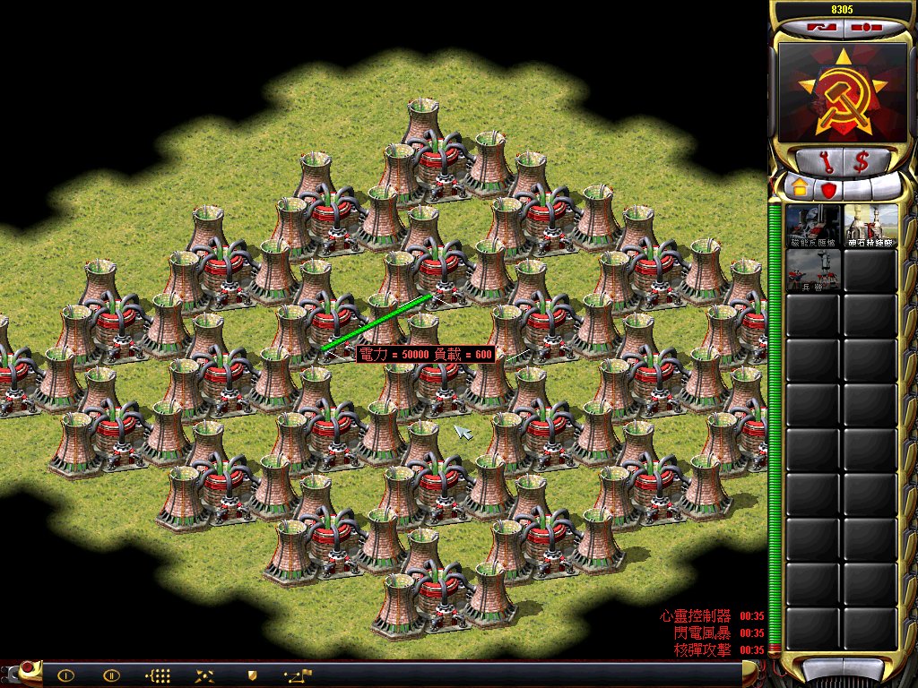 那么,问题来了超武对建筑(核电站的装甲)的威力怎么样呢?同样的,用漏电法,测量出核武的威力。电站全部满血的时候电量为50000