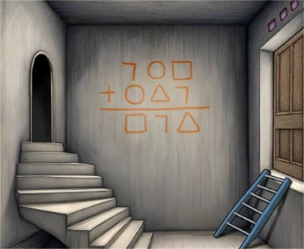 15.回到黄盒子屋子(中轴线第三个屋子)墙上的眼睛方向,二次输入泳池密码(右右,左下,右上)获得减号。