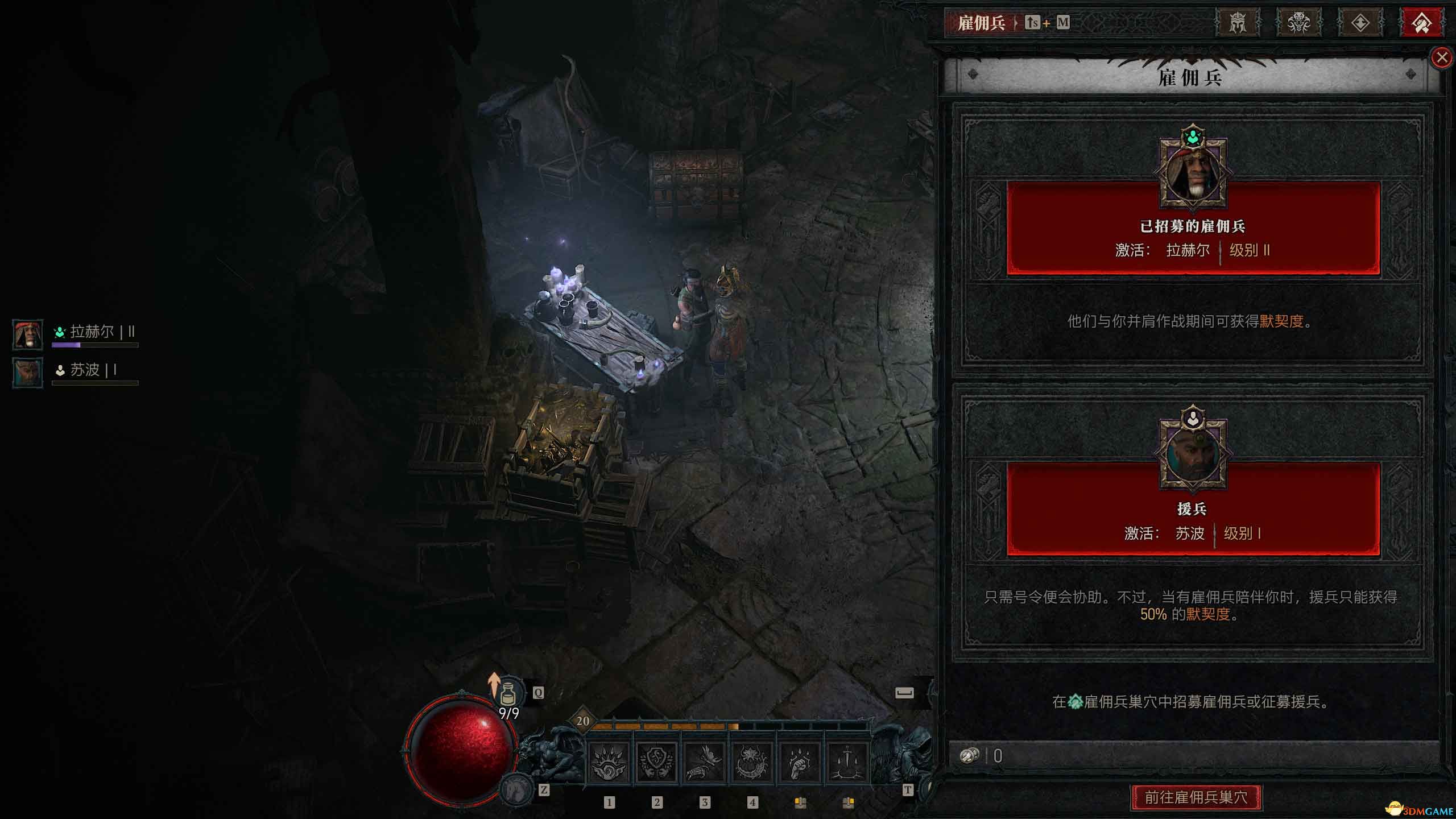 完成主线双手难忘利刃后就解锁了佣兵系统,一开始只能雇佣拉赫尔。