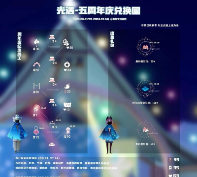 光·遇五周年庆星星代币7.14(今天活动最后一天)如下:
