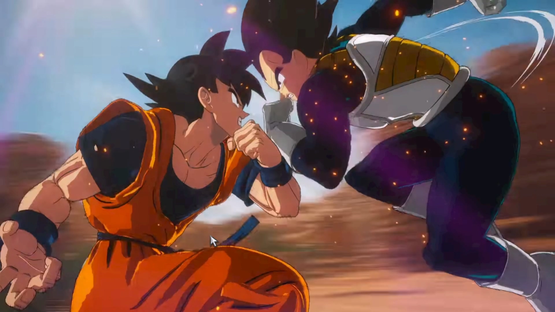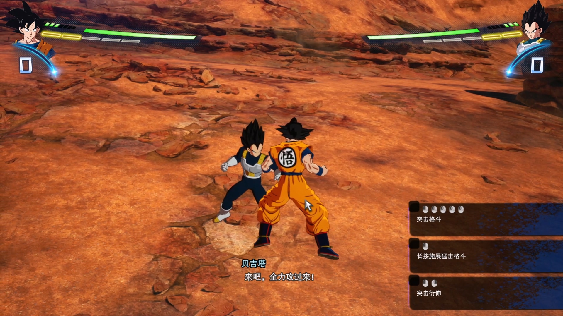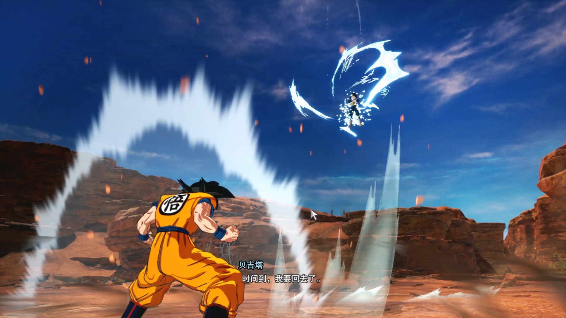 进入序章,出现孙悟空和贝吉塔打斗的画面。