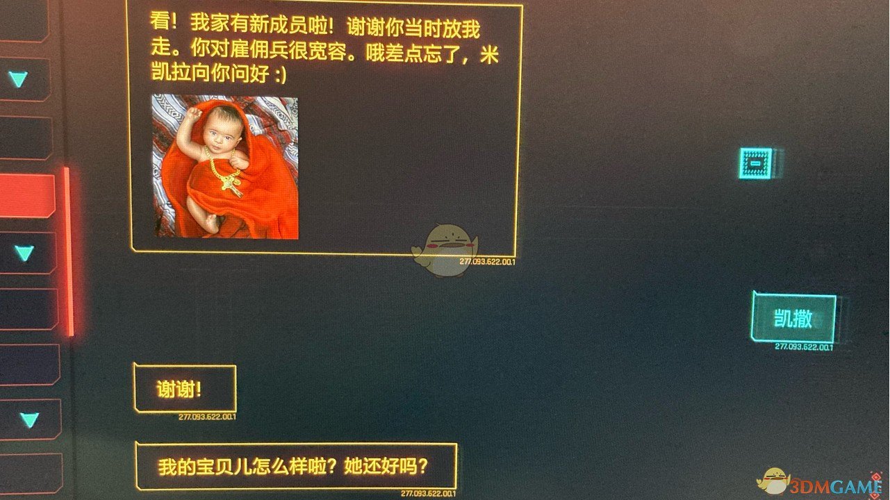 在支线黑拳的系列任务中,谷地区的拳手凯撒的老婆已经怀孕了,但凯撒完全不考虑他老婆,把钱和车都押上了。打赢凯撒后他会把输掉的钱和车都给你,这时如果选择不要他的钱,凯撒和他的老婆就会感谢你,以后孩子出生了还会给你发消息让你看他孩子的照片。