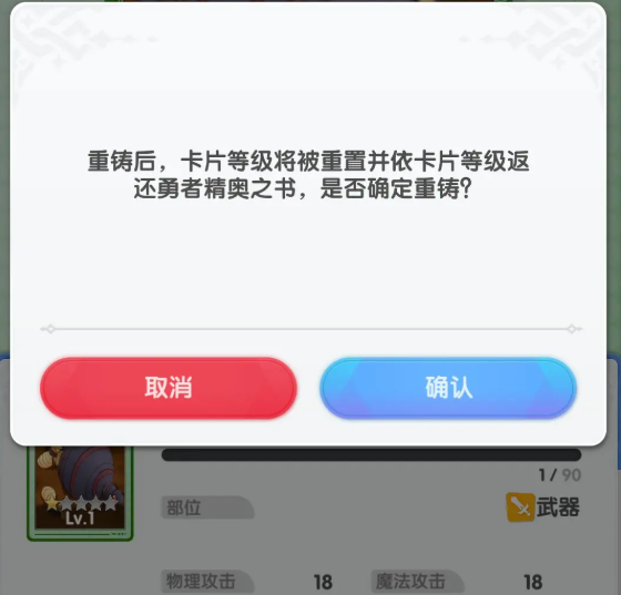 卡片等级重置并依卡片等级返还勇者精奥之书。