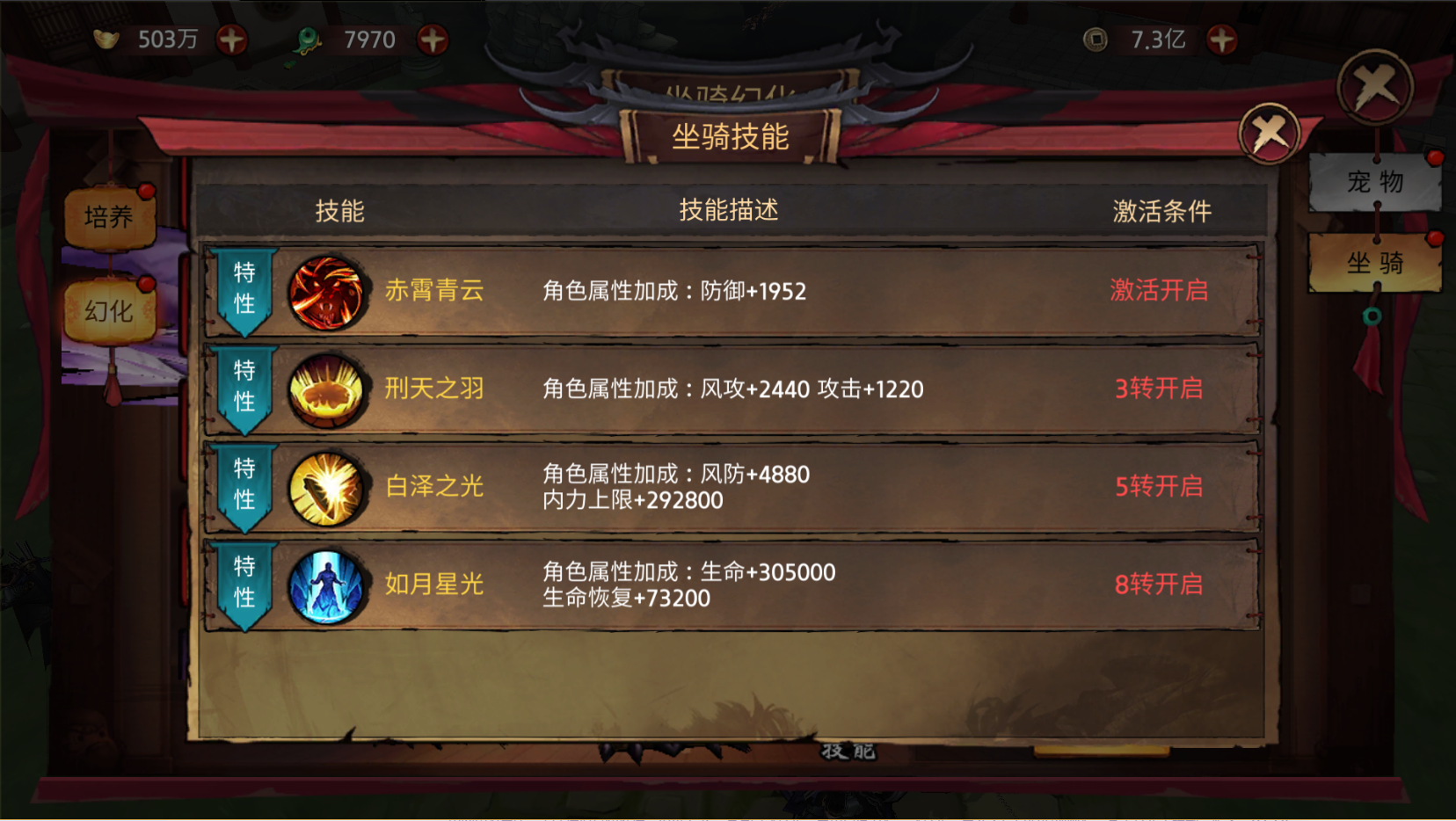 内力上限与生命加成:内力上限+292800,生命+305000