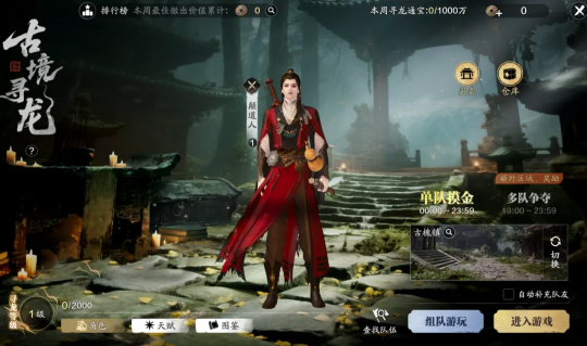 选好同行方式,下一步便是打造专属的寻宝战力”。正式进入秘境前,少侠需要在角色界面中解锁并选择角色。