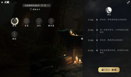 此外,少侠还能通过玩法升级后获得的天赋点提升全角色通用的天赋效果,降低被怪物发现概率、增加背包容量、扩大照明范围、减少内息消耗、增加移动速度,全方位助力你的寻宝之旅,让每一次探索都更加得心应手!