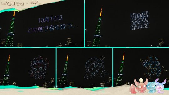 10月16日晚,在东京塔上空举办了以"巨塔启程"为主题的无人机表演。500架无人机勾勒出游戏中的巨塔与主角,将夜空变为游戏画面本身。以游戏Logo和"登塔冒险"为主题的光影艺术展现了游戏世界观,现身东京夜空的崭新巨塔引起了巨大反响。