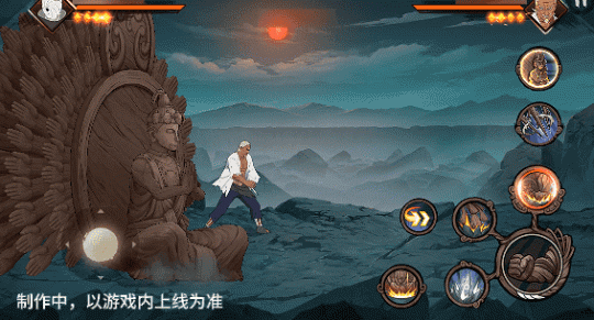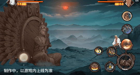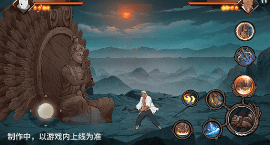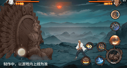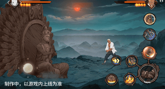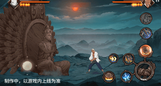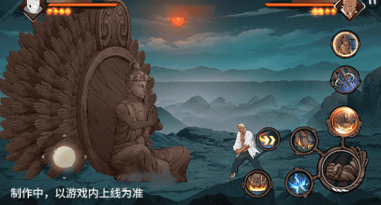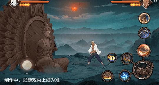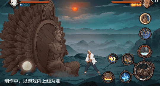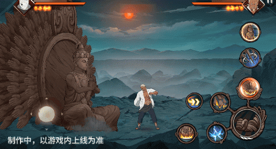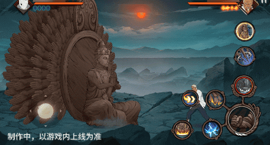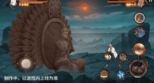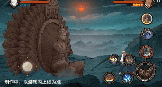 大佛移动时始终面向前方,可以通过点击子技能转向,转向过程中拉动摇杆即可控制转动的方向,转动过程中有拍掌打击动作。
