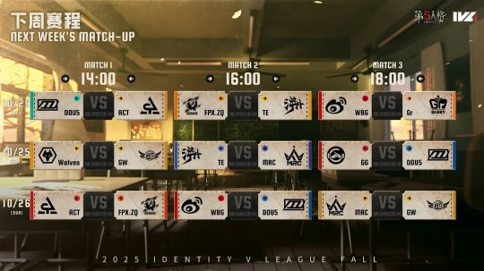 本周ACT战队面对强敌难分难解,展现出不容小觑的实力,但还是暴露出一些问题,求生者方后期运营较差,在与MRC战队的第一局中,开门战永眠镇墓地大门已经被点开,跛脚羊”在大门前狂欢之椅挂上逃脱大师”后直接去学校门地窖点追击教授,木偶师藏于S板区,完全有机会将逃脱大师”救下后双人一起出门,即使MRC_BaiLu的底牌未交,可以切传送拦门,但最多也只能拦住一人且必须花费时间挂人,至少保证逃脱一个,教授倒地位置在地窖附近,也有机会争取平局,结果因为使用逃脱术后7秒无法交互的冷冻期被迫使木偶师放弃救人,只得自己逃生;WBG_N1e喧嚣”分身释放熟练度较差,追击效率较低,求生者方问题较为明显,首先是对战MRC战队时,WBG_Guoker开局36秒被击倒,WBG_Persica救人时淘汰进度压得太满且信号枪被躲被迫过半秒救,该队求生者比较依靠成功的一次牵制以及二次牵制中操作手的硬实力将局势强行扭转,一旦操作手失误,整队在残局运营方面会较显吃力,最后极易落得个一着不慎满盘皆输”的情况;GG_Qiu在开门战运营决策方面稍显问题,在对战TE战队时,木偶师压月亮门电机,咒术师去向已知,在击倒淘汰大副后应第一时间留残影传送月亮门勘察情况,还有一争三抓的机会,在对战GW战队时,也是因为决策犹豫导致求生者挣脱监管者之握,失去了加深自己控场优势的机会,成都GG求生者方本周整体发挥较为稳定,GG_ppxia个人牵制大放异彩,GG_ppz使用白板角色时牵制功底扎实,但使用道具便会显得手忙脚乱,很难打出效果;成都Wolves战队求生者在面对Gr_Jin的时候状态不佳,被压制得毫无还手之力,应尽快调整状态,但本周新人选手Wolves_tian牵制稳健,即使面对FPX.ZQ_DongX这样老道的监管者也不露怯色,Wolves_Yeyv杂货商颇为亮眼,但在面对求生者打团会出现心态不稳将技能全盘托出的情况;DOU5战队本周密码机破译速度大幅度提升,求生者牵制稳定程度也有很大起色,面对GW_ALi杂货商选出咒术师和木偶师体系也打出效果,在临近开门战阶段强行将监管者的底牌逼出,降低己方开门战压力,但在逃脱大师”逃脱术的使用上也同样存在过于追求短路径救人进行换位结果无二次牵制空间”顾此失彼的问题,DOU5_Yan杂货商熟练度很高,守椅过程技能使用行云流水,最终顺利收割四抓;FPX.ZQ_DongX本周状态明显回暖,在对阵成都Wolves战队时,面对有飞轮和隐喻的小说家前来救援,短距离内也能成功将其拦下,丝滑守椅奠定四抓局面;Gr_Jin获得本赛季第一个淘汰50名求生和最快击倒记录双成就,Gr求生者即使在前期会出现失误,但过硬的个人实力和后期运营也能快速调整过来,能够将逃脱大师”逃脱术合理使用并多次无伤救援也为队伍带来了不小的收益;GW_tzym问题较大,从操作到思路再到心态都需要精进,GW_ALi意识和大局观较好但争胜能力较弱,且破轮熟练度不高,求生者整体机动性不高,容易出现低级失误;TE战队双屠轮换再现风采,TE_ppei、TE_suda都精通四大天王”且后手角色池互补,本周TE_ppei在第二局中选出渔女为后手TE_suda解放出他的绝活蜘蛛,TE_suda也迎来他的第一个赛场四抓,相信他们会越来越强;MRC_BaiLu本周进一步拓展了自己的角色池,26号守卫虽然熟练度不高,但扎实的基本功和清晰的思路弥补了这一点,他对局势明察秋毫,在对战北京WBG的第二局中,在火灾调查员即将倒地时视角后拉的那两秒便捕捉到花园密码机摇动后又立刻停止的细节,而后精准排人续节奏,MRC_XiaoX本周表现亮眼,在对战ACT_zz9的歌剧演员开门战顶住压力在三站下三板灵动博弈,多次极限翻板,连折三刀,成功拖出终点站病患的开门时间,为队伍争取平局。总体来看,本周求生者方极速被击倒以及救援浅尝辄止的情况较多,希望选手们能尽快调整自己稳住心态,在下周展示出自己的真正实力!