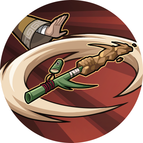 离手状态下释放二技能,侠隐大野木迅速收回场上的竹棍,并击飞返回路径上的敌人,收回竹棍后切换为跟随状态。