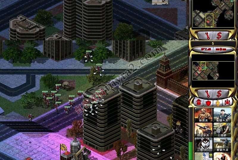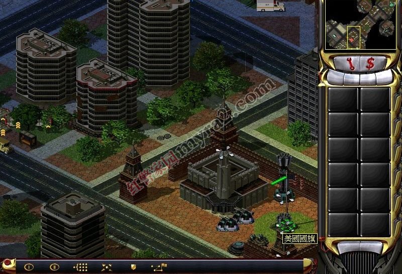 直接来这里干掉电厂,那些光陵塔就废掉了。路上的平民要注意杀掉。他会攻击你,有的还有尤里的控制功能。要注意